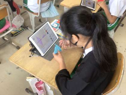 来週修学旅行に出かける6年生。外国人にインタビューをするそうで、そのときにプレゼントするものを折り紙で作っていました。