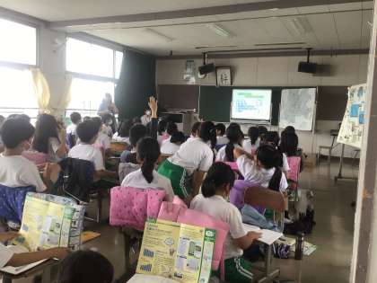 4年生のみなさんが、ゲストティーチャーにお越しいただき、水の学習をしています。今日から節水マスターです!