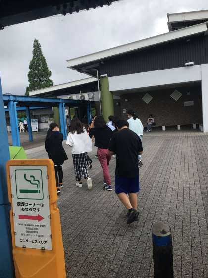 土山SA、トイレ休憩の様子です。愛知、三重、滋賀ときました。ここまで体調不良者なく、予定通りすすんでいます。次は清水寺に行きます。