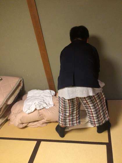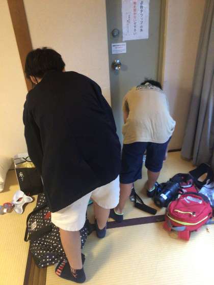 食事の前に部屋の荷物はすべて出します。自分達でしっかりと荷物の整理をしたり、布団の片付けをしたりしています。