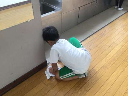 下古屋松栄会会長様からたくさんの雑巾をいただきました。2年生の子が早速使って掃除をしています。磯村様、ありがとうございます。大切に使わせていただきます。