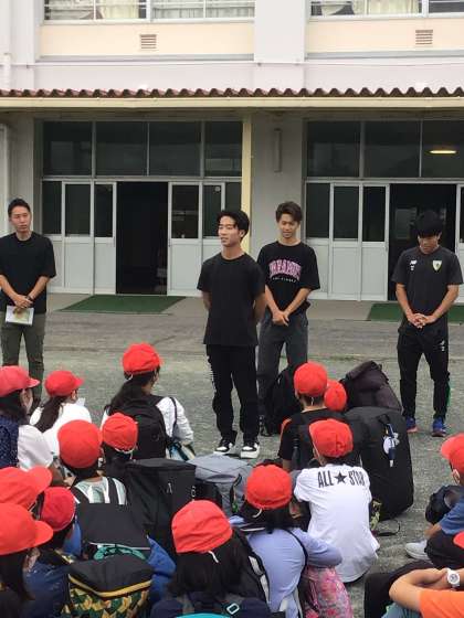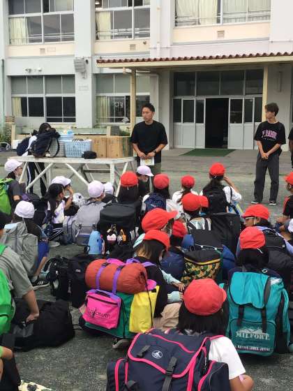 出発式の様子です。今回はボランティア3名も参加します。全員で成長できるよいキャンプにしてきます!