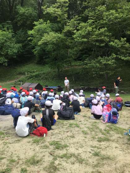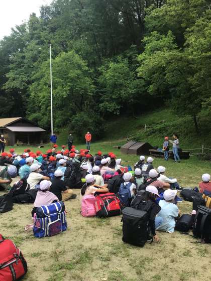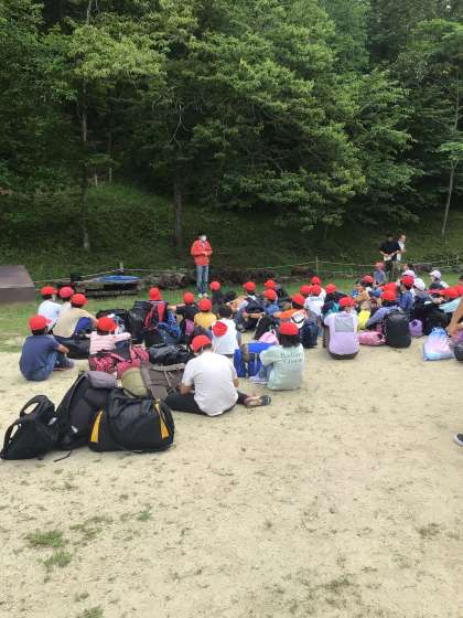 入所式を行いました。校長先生、所長さん、所員の方から話がありました。また、リーダーからキャンプの意気込みが語られました。いよいよ総合野外センターでの活動がスタートします。