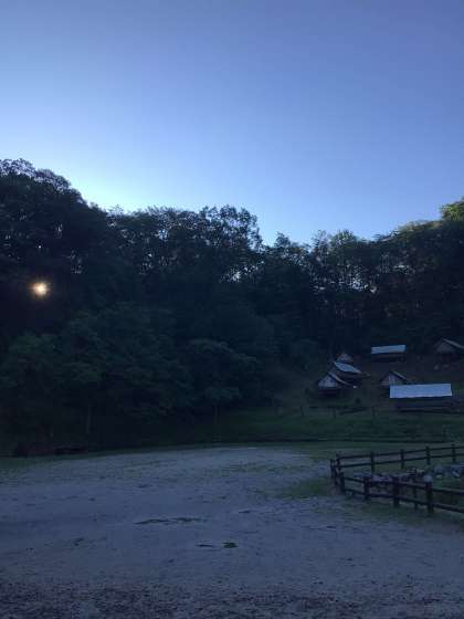 おはようございます。日が昇り始め起床の時間です。昨晩は、カエルの鳴き声などに囲まれた夜でした。