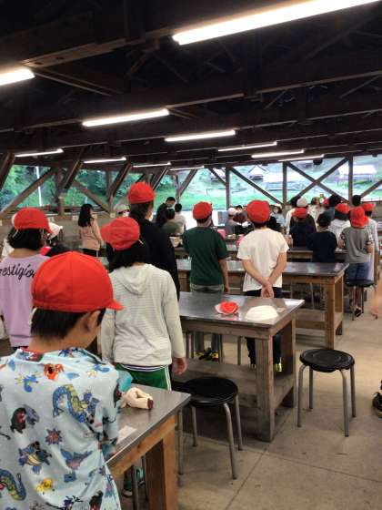 朝のつどいを行いました。子どもたちが司会で進行し、体操や班会議などを行いました。