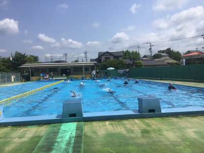 今週いっぱいで水泳学習が終わります。どの学年もまとめに入っています。今日は、2年生も6年生も何m泳げるか計測していました。