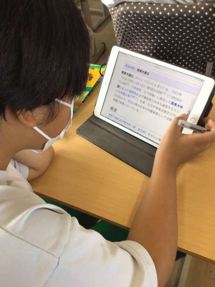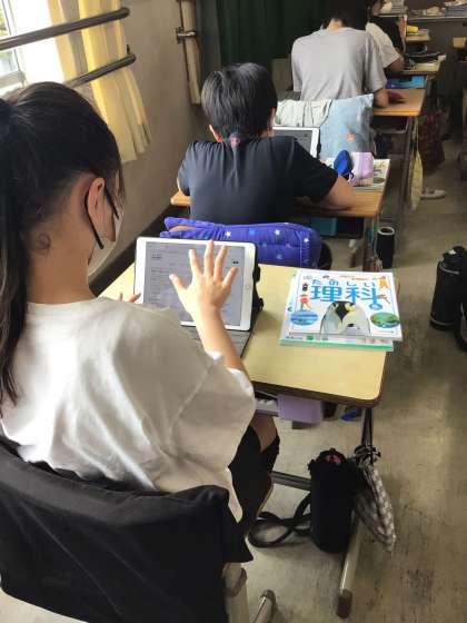 理科の授業では、震災について学びました。関東大震災は、相模トラフを震源とする海溝型地震のため、南海トラフについて調べました。今回の授業で、地震や防災について真剣に考える姿が見られました。学校では、子どもたちの安全を守るため、後期に避難訓練を実施する予定です。