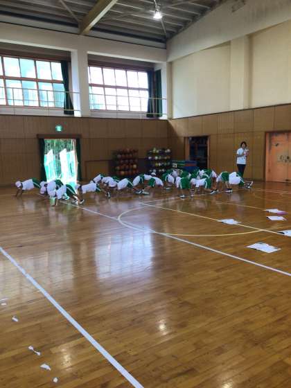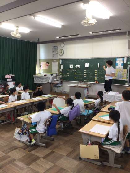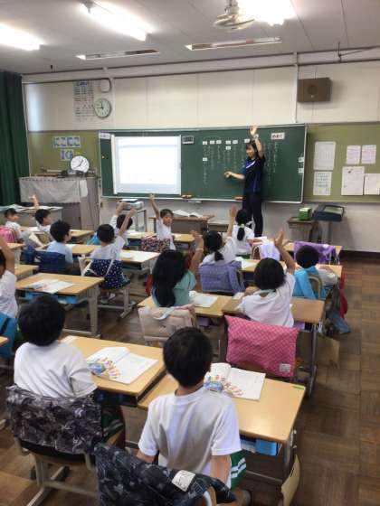 1年1組は図工、2組は国語、3組は体育の授業を行なっています。1年生らしく、元気いっぱい学ぶ姿が見られました。