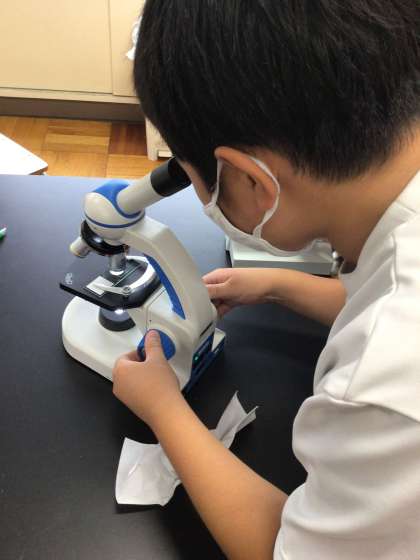 6年生は、「生物どうしの関わり」の単元を学んでいます。今日は微生物の観察を行いました。顕微鏡を使って、教員で用意したプレパラートとメダカ池の水から作ったプレパラートを観察しました。上手に顕微鏡を操作して、ミジンコやボルボックスなどを観察しました。あまりに、きれいにピントを合わせていたので、思わず写真をとらせてもらいました。これからも、五感を使って楽しく理科をすすめていきます!