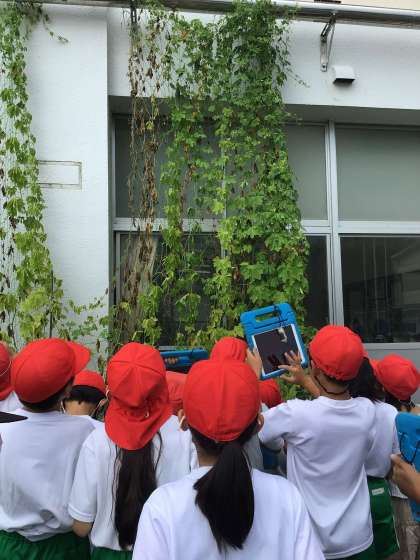 夏の終わりの生物について学んでいます。ツルレイシとサクラの様子を観察しました。学習用タブレットで写真を撮影し、それを基にノートにスケッチをしました。