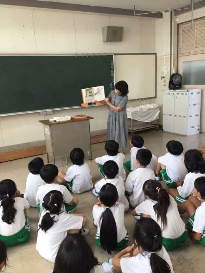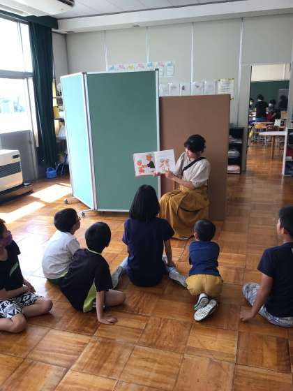 本日も、読み聞かせボランティアの方に来ていただきました。絵本や紙芝居などを読んでいただきました。子どもたちは、読み手の方を見て、真剣に聞き入っていました。ボランティアの方々、いつもありがとうございます。