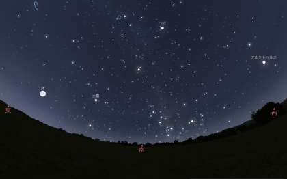 写真はアプリstellariumの画像です。豊田市の今日の午後7時ごろの空を表しています。