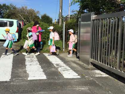 今朝は気候が良く、元気よくあいさつをする子どもが多かったです。あいさつ賞は、天道1−1、下古屋3-2、青空4-3、亀首3-2、高町2−2、天道5−5。全員があいさつすることができる通学班が選ばれました。