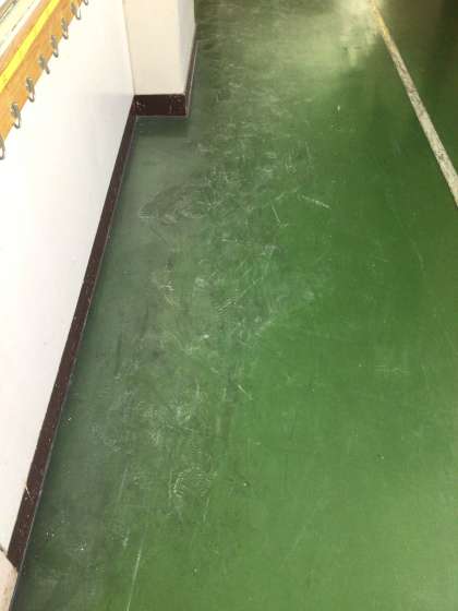 トイレの工事の関係で廊下に白い粉が積もっていました。その廊下の汚れに気づき、児童の体によくない可能性もあると考え、モップがけをしてくれた先生がいました。