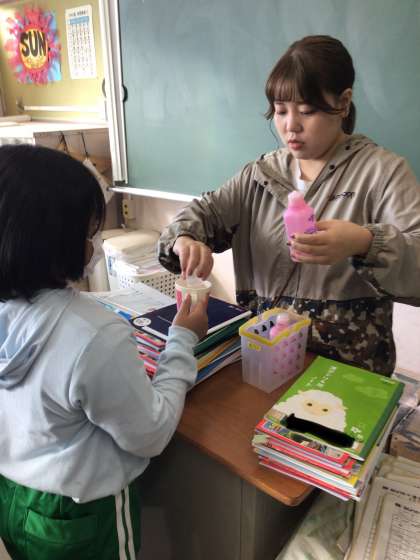 希望者を対象にフッ化物洗口を行いました。「むし歯や歯肉炎の予防をし、口腔内の健康と心身の健康を守る」ことを目的に毎週木曜日実施します。今日は1年生から4年生までは水を使いやり方の確認をしました。歯の健康に目をむけ、意識を高めていけるようにしていきます。