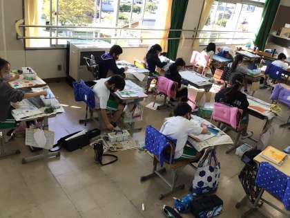 東トイレ改修のため、4年2組は、現在4階西側のアカシアルームで1日を過ごしています。今週で大きな音はおさまり、元の教室に戻ります。