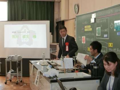 公開授業の後に開かれた各教科の説明会の様子です。算数科、理科、体育科、外国語科に分かれて、本校が各教科の授業にどのような考えをもって取り組んできたかを、参加者に説明しました。また、参加者から出た質問にも答えました。とても有意義な時間となりました。