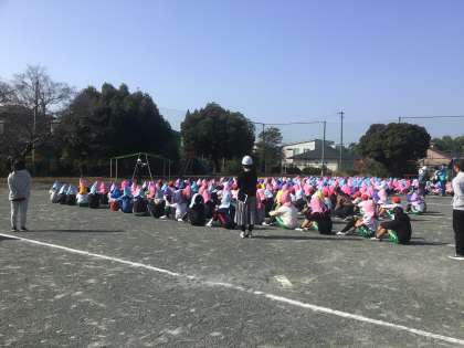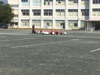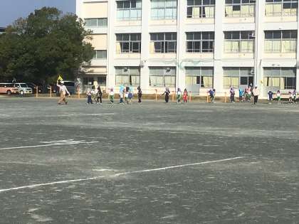 今回の避難訓練は、地震後に火災発生という設定で行いました。全校児童が「おはしも」をしっかりと守り、真剣に取り組みました。