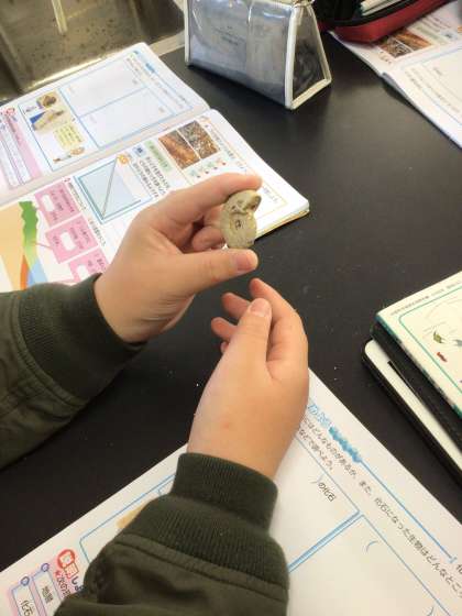 6年生は「土地のつくりと変化」の単元を学んでいます。今日は、本物の化石を観察しました。その後、化石について調べ学習を行いました。本物に触れることで、学ぼうとする意欲が高まったように感じました。これからも、実験など五感で感じられるような授業を取り入れていきます!