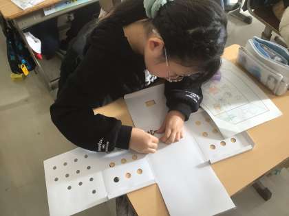 「のぞいてみると」どんな世界かな。立方体の中に立体的に作っていきます。楽しみにしてください。