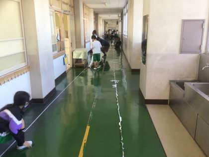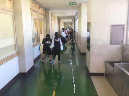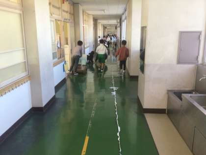 一人1枚A4サイズの紙をできるだけ長くなるようにはさみだけで切って、全員分を繋げました。32mになりました!