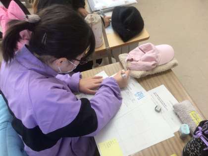 環境委員会では、清掃強調週間に向けて、どうしたらみんながやる気を出して取り組んでくれるか、アイデアを出し合っていました。今回のスローガンは、「清掃で学校中をピカピカに」です。四郷っ子みんなで学校をピカピカにします!