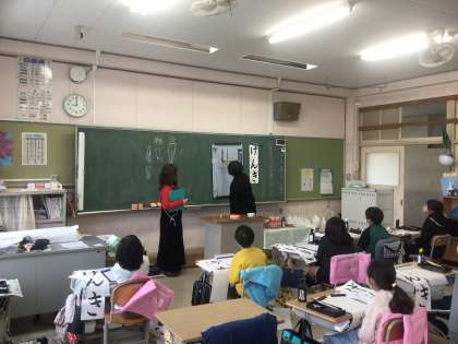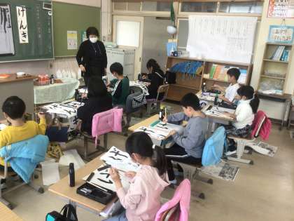 1/9が書き初め大会なので、みんな書写の時間は、今まで以上に真剣に取り組んでいます。今日からクラス1回2時間ずつ書写ボランティアとして、外部から先生をお招きして習っています。子どもたちは、先生がお手本で書いてくださったすぐ後にポイントを意識しながら書くと、見違えるほど上手に書いています。