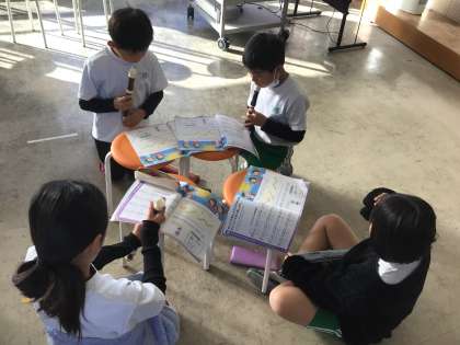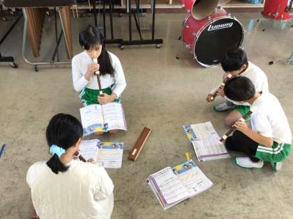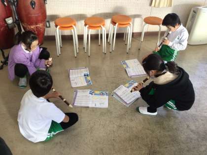 グループでリコーダーの練習をしました。それぞれめあてを決めて、全員が吹くことができるようにがんばりました。