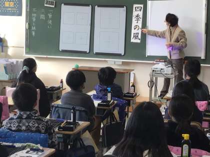 本日は高学年の指導日でした。先生が水板に書くのに合わせて、一画一画丁寧に書いていきました。