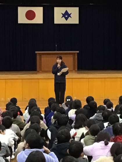 全校集会を行いました。校長先生の話、寺田先生から書初め大会についての話がありました。校長先生からも話がありましたが、話を聞く姿勢がとても良かったです。特に高学年は素晴らしかったです!これからも話を聞く姿勢を大切にしていきます。