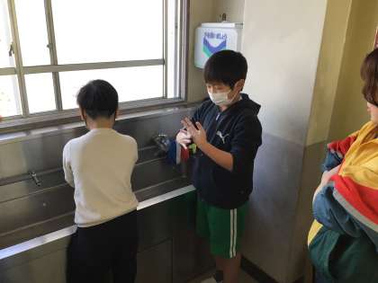養護教諭が「手洗い」について授業をしました。手のどこがで汚れているのか、汚れを落とすためにはどう洗えばよいのか、一人ひとりが考えていました。手洗いの後はブルーライトで確かめ。しっかり洗えていたかな。
