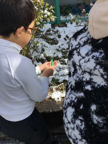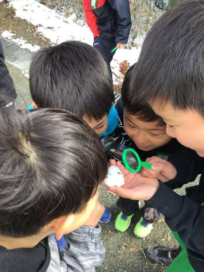 3年1組の授業の様子です。雪が降ったため、雪の結晶を観察しようとしました。自然現象には、科学の魅力がたくさんつまっています!
