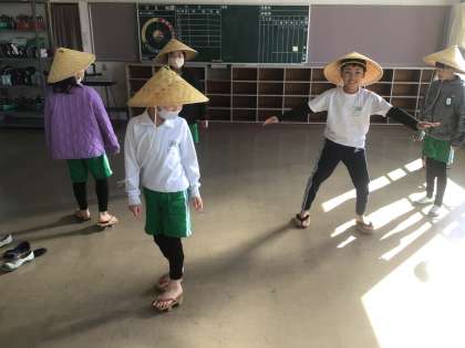 下駄を履いて上手に歩いています。かつお節も上手に削っています。