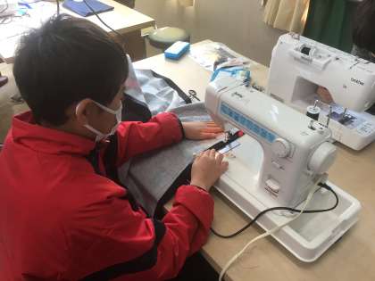 ミシンを使うのは4回目になりました。今日もボランティアの方々に助けていただきながら、エプロンを製作しています。来週、無事できあがるかな?