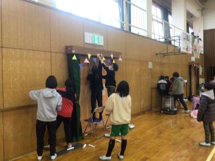 5年生が明日の6年生を送る会の飾り付けを体育館で行っています。いよいよ明日の2・3時間目が6年生を送る会です。今から待ち遠しいです。