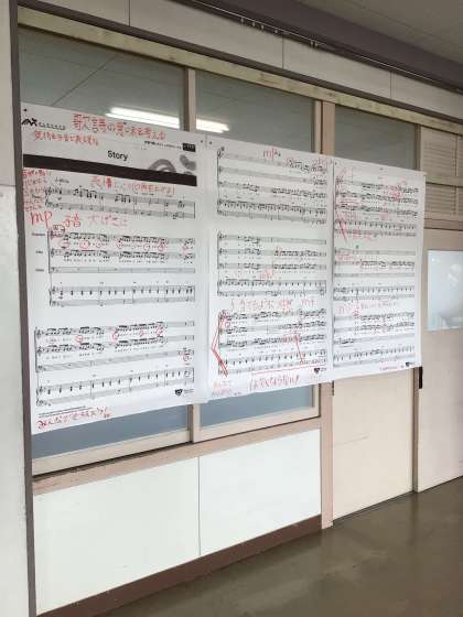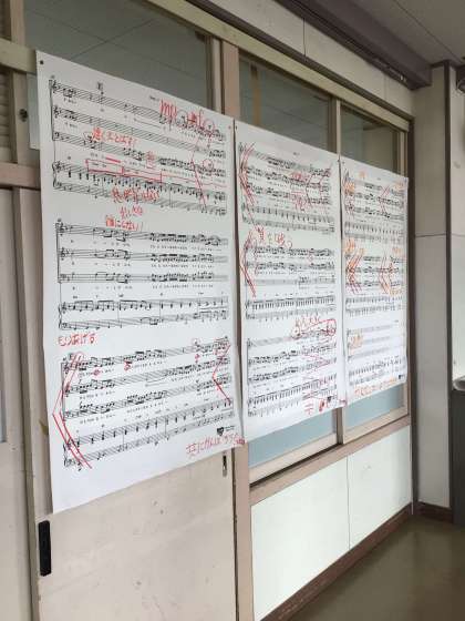 アカシアルームに拡大された楽譜が掲示されていました。子どもたちが意識する部分を自ら書き込んであり、合唱への情熱や想いを感じました。卒業式のstoryがとても楽しみです。