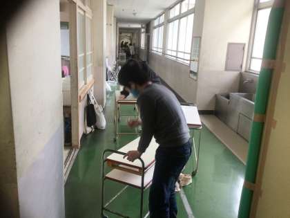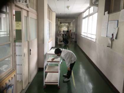 給食委員会のメンバーが、各クラスの配膳台をピカピカに磨いてくれています。1年間の汚れをしっかり落としてくれました!