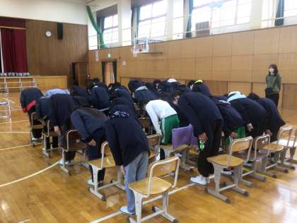 5年生の卒業式練習の様子です。礼を合わせたり、歌の練習をしたりしました。今日は、坂東先生から卒業式に向けた心構えを聞きました。