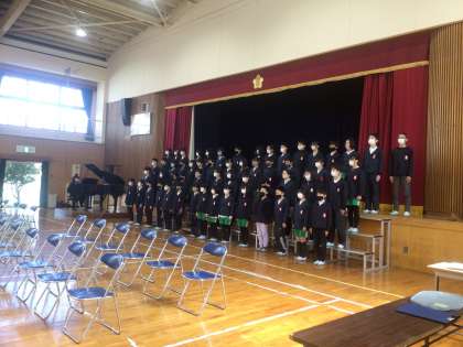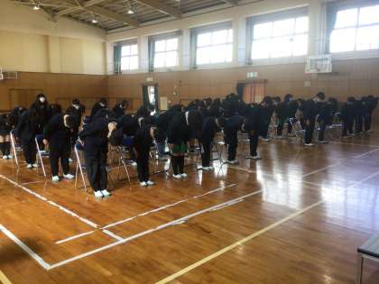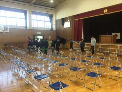 今日は、入場から退場まで通し練習をしています。まだまだぎこちないところもありますが、群読はとても力強さを感じます。長時間の練習でも、ずっと真剣な表情で集中して臨んでいます。さすが卒業生!