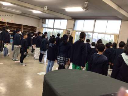 5、6年生が揃って言葉や歌の練習をしました。今年は久々に在校生が入ります。熱の入った練習でした。