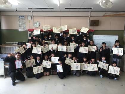 最後の学活で撮った写真です。みんな素敵な笑顔です!