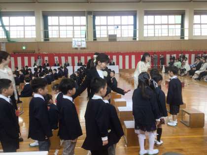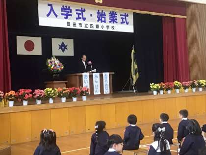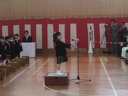 令和6年度の四郷小学校は、79人の新入生を迎えました。入学認定では、みんな元気よく返事をしていました。お話を静かに聞き、写真撮影ではさっと整列をしていて、とても立派でした。