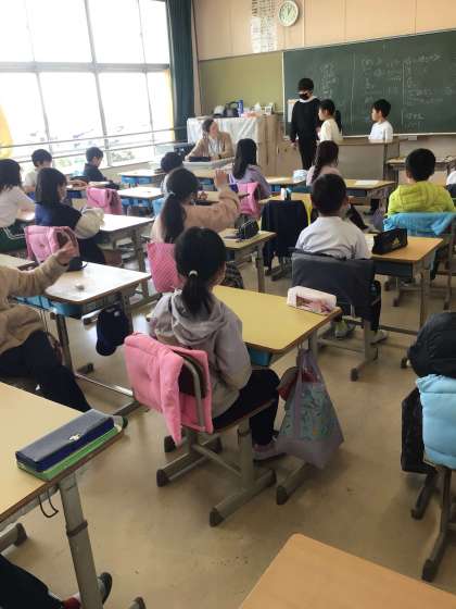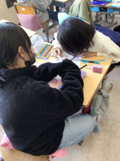 4年生の授業の様子です。委員会や自己紹介カードなどの掲示物を作りました。また、級訓について考える学級もありました。