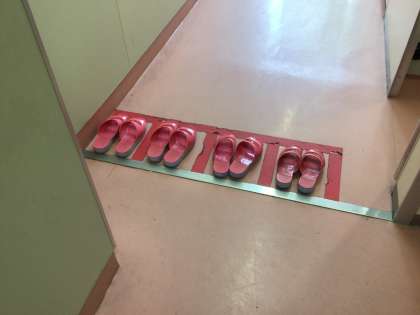4階西トイレのスリッパの様子です。朝見ると、しっかりと整頓されていました。整頓された環境で生活できると、とても気持ちいいですね。今年度も、「整理整頓」にも力を入れていきます。