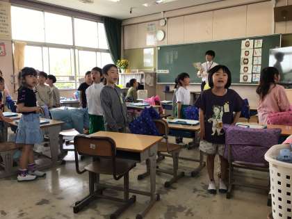 1年3組は、保護者のほうを向いて、元気よく国語の教科書の音読をしていました。
