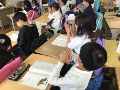 3年2組の授業の様子です。1組同様、音読発表会をしました。