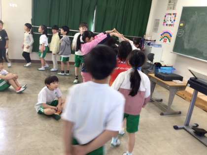 音楽の授業で、ロンドン橋を歌いました。 みんなで、ゲームを楽しみました。