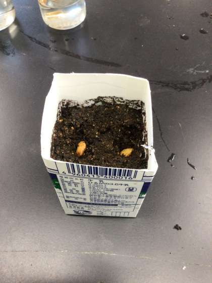 4年3組、理科の授業の様子です。ツルレイシの種を植えました。これから、教室で育て、その後、花壇に移して緑のカーテンを作っていきます。