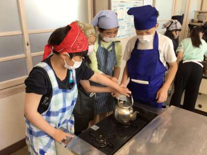 茶葉、水を量ったり、ガスコンロの使い方を確認したりしました。どの子も真剣に取り組み、美味しくお茶を淹れていただくことができました。
