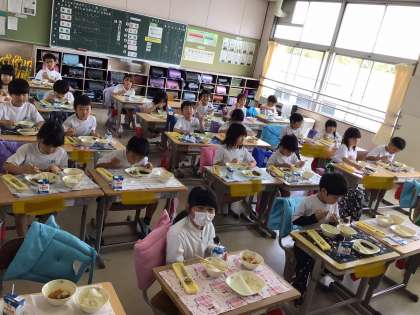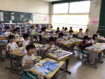 今日から新しいALTが来てくれます。2年生と一緒に初めての給食。美味しかったそうです。他のクラスでも食べてくれます。